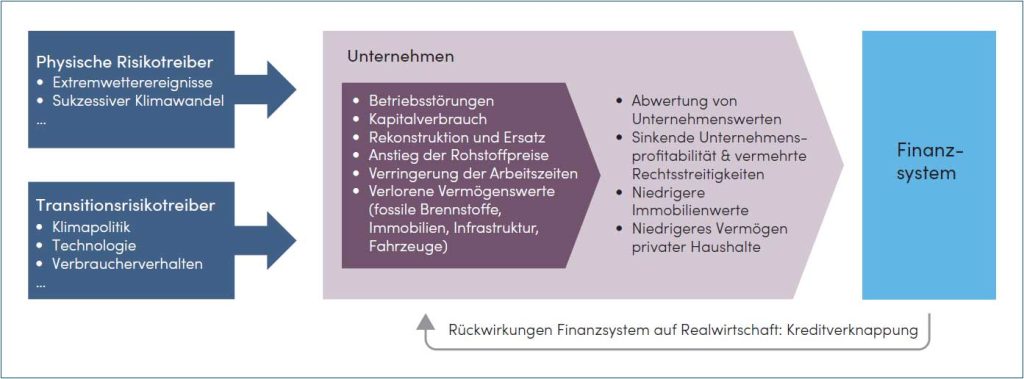 Abbildung 1: Physische und transitorische Risikotreiber und ihre Wirkung auf Unternehmen