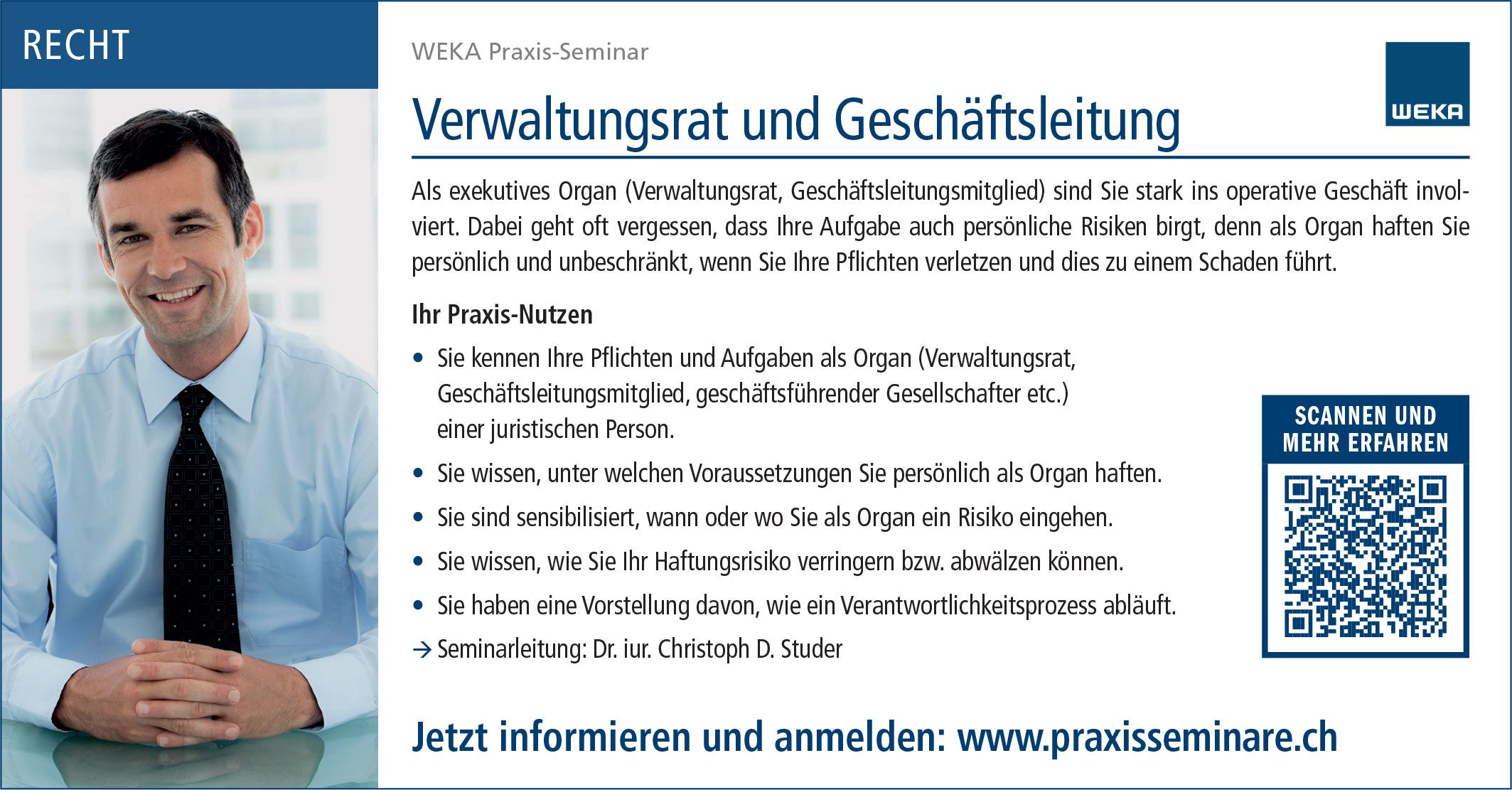 Der Verwaltungsrat kann und sollte das Thema Verhandeln aktiv in seine jährliche Planung übernehmen. Aus-/Weiterbildung im Verhandeln gehört in die Toolbox des Managements, genauso wie der VR in die Eskaltionsstufe eingebunden werden muss.